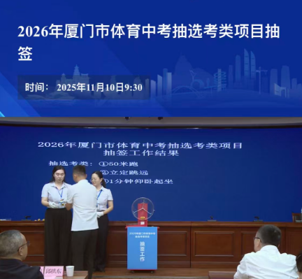2026年厦门市初中毕业升学体育考试抽选考类测试项目抽签结果公布: