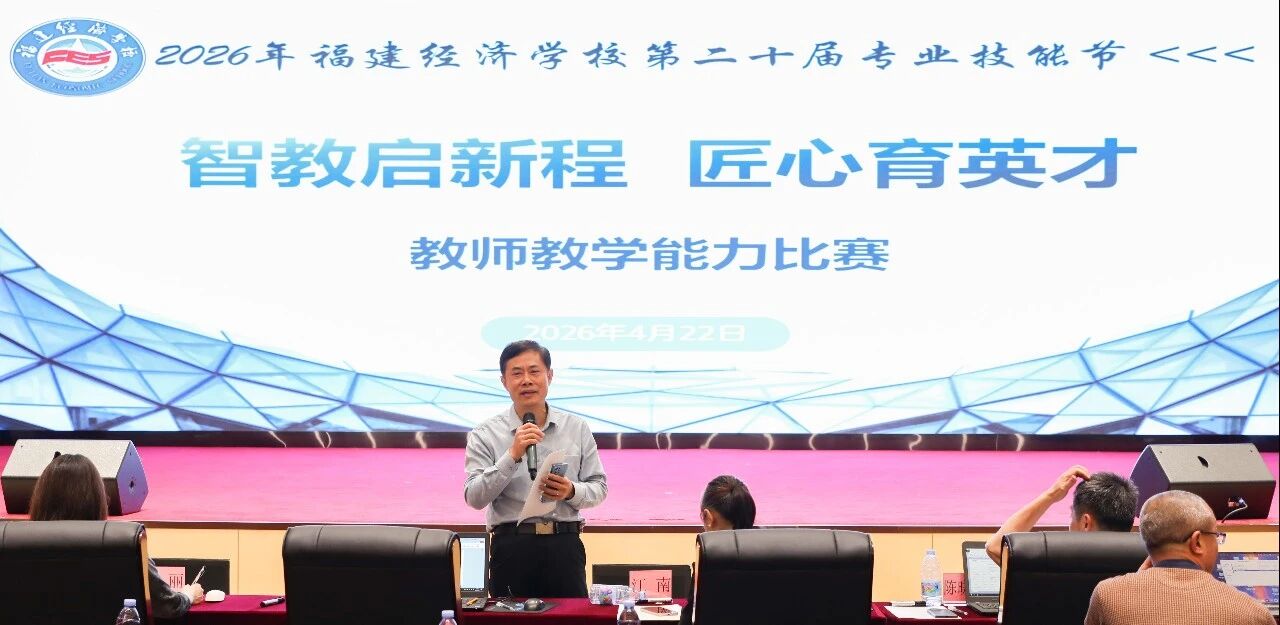 4月22日下午,福建经济学校第二十届专业技能节教师教学能力比赛现场决赛顺利举行。本次比赛以“智教启新程,匠心育英才”为主题,旨在贯彻习近平总书记关于职业教育的重要指示,落实《“人工智能+教育”行动计划》,推动人工智能与教学深度融合,提升教师数智化教学能力,打造高水平教学创新团队。