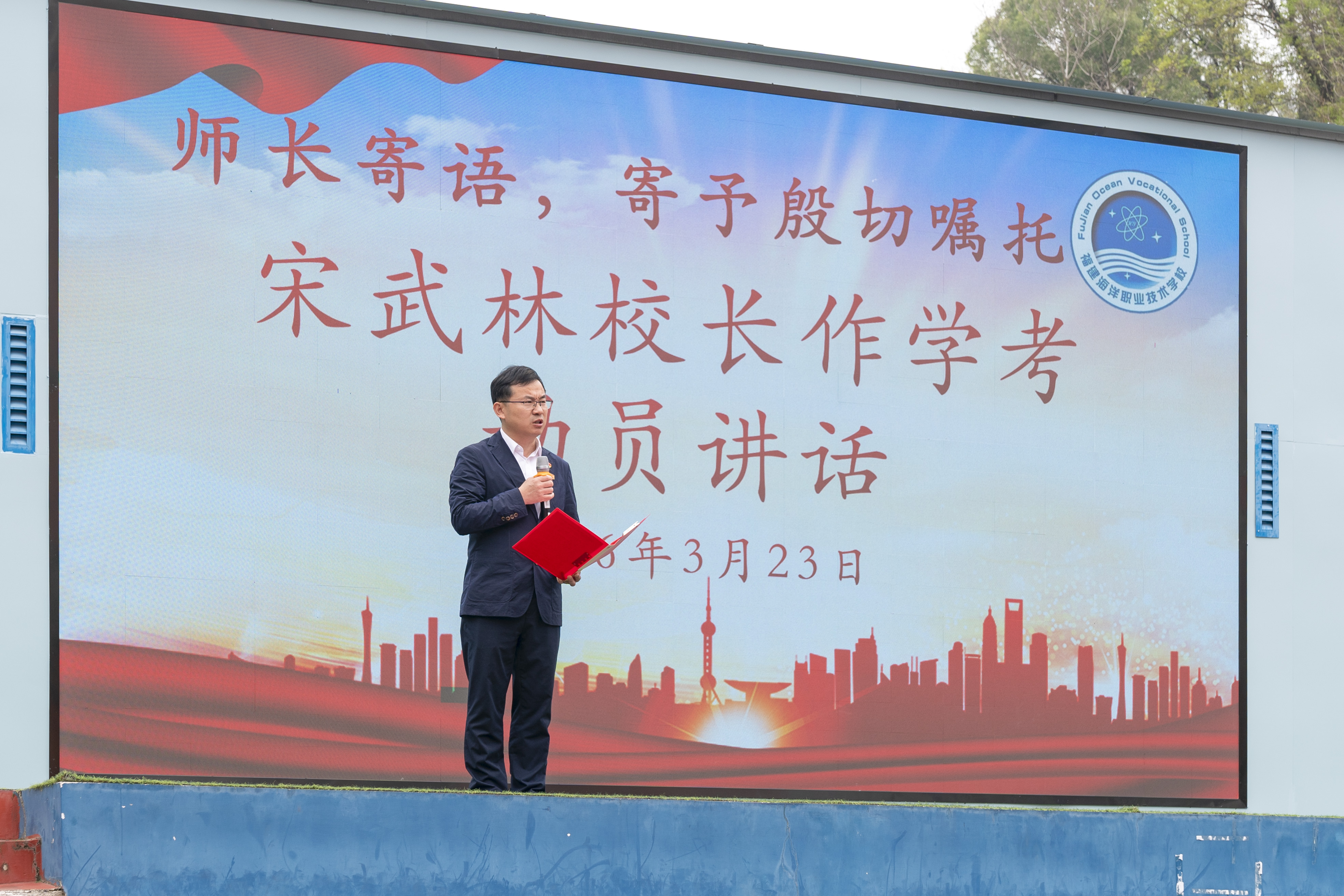 3月23日上午,福建海洋职业技术学校举行2026年学业水平考试动员大会,为即将奔赴学考征程的学子加油鼓劲、助威壮行。校领导、全体师生参加大会。