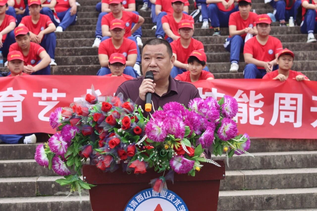 唐校长发表热情洋溢的致辞。他首先对本次远足研学暨技能周开幕式的顺利举行表示祝贺,对全体师生的积极参与和辛勤付出表示感谢。唐校长指出,远足研学是行走的课堂,旨在让同学们在实践中强健体魄、磨砺意志、涵养品格;体育艺术文化技能周则是校园文化建设的重要载体,为同学们展示专业技能、艺术才华、体育风采提供了广阔平台。他勉励全体学子珍惜此次活动机会,在研学中感悟成长,在技能比拼中锤炼本领,在文体活动中绽放活力,以昂扬向上的姿态展现西山职校学子的青春风采,努力成长为德技并修、全面发展的新时代职业学子。