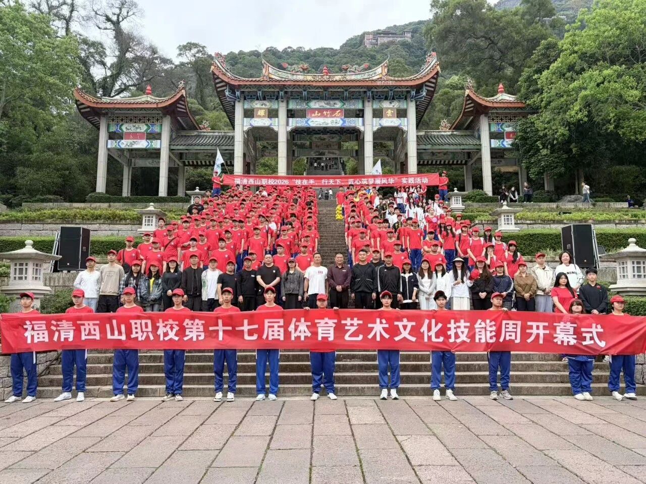 春风送暖,万物勃发;青春向党,步履铿锵。为践行知行合一的育人理念,锤炼学子意志品质,同时拉开校园文体技能活动序幕,4月25日,福清西山职业技术学校隆重举行“远足研学暨第17届体育艺术文化技能周开幕式”活动。本次活动得到福清石竹山管委会的大力支持与协助,全体师生以脚步丈量征程,以青春展现风采,开启一场兼具研学意义与校园活力的特色活动。