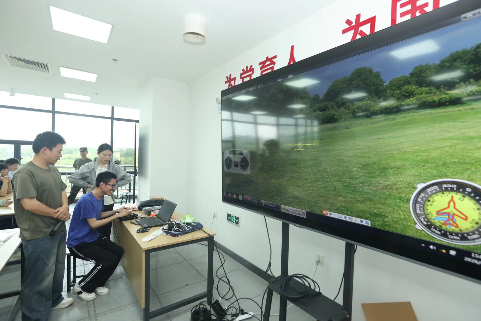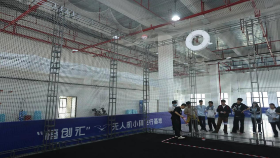 在专业飞行场地上,教练团队带来无人机特技秀——无人机完成空中悬停、螺旋上升、精准穿障等高难度动作;穿越机以极速穿梭赛道、360°翻转、贴地飞行,展现极致操控与动力性能。学生们近距离观察飞行姿态、聆听技术讲解,直观感受无人机的稳定性、灵活性与应用潜力,激发专业学习兴趣。