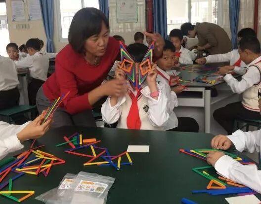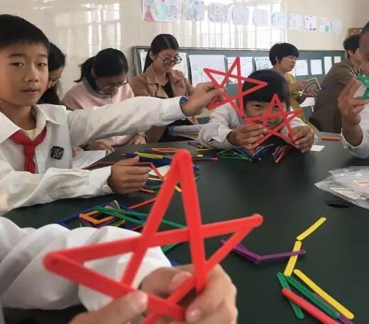 后面听课老师也被吸引住了,研究起几何扣条来。