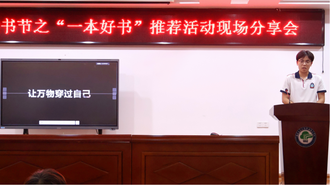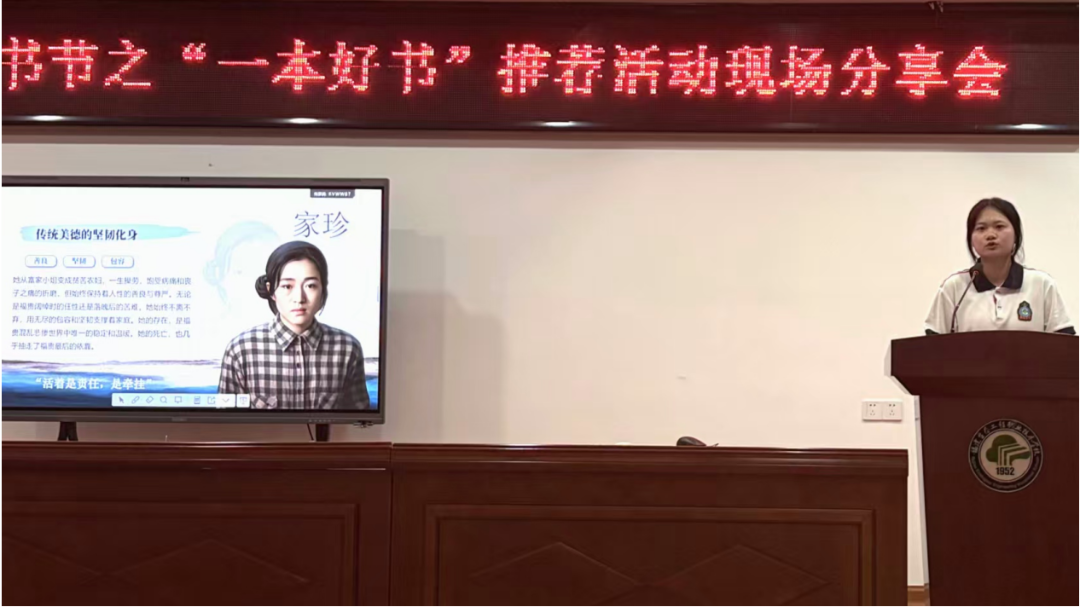 陈欣怡同学——《知否知否应是绿肥红瘦》:她分享了书中鲜活的人物与生活美学,从中提炼出关于家庭、成长与女性智慧的当代启示,令人耳目一新。