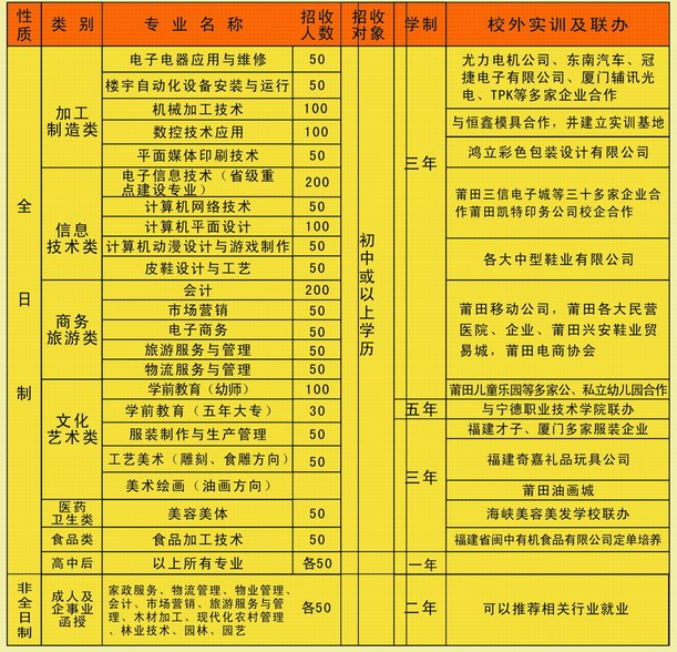 仙游华侨职业中专学校2025年招生计划
