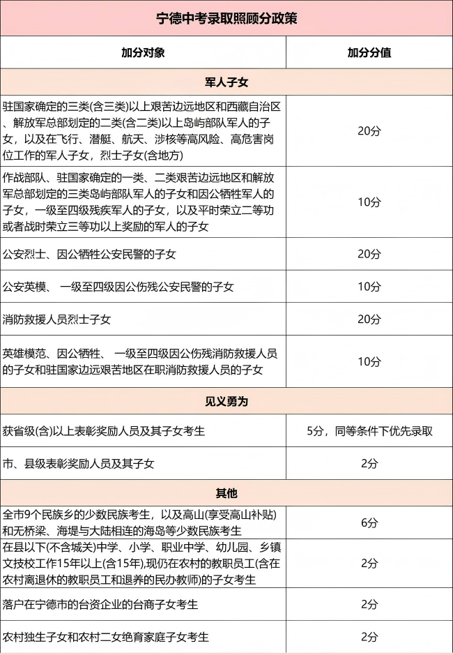 08、宁德中考加分政策