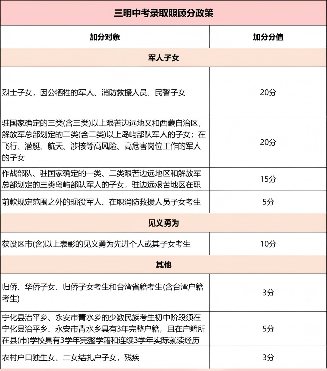 09、三明中考加分政策