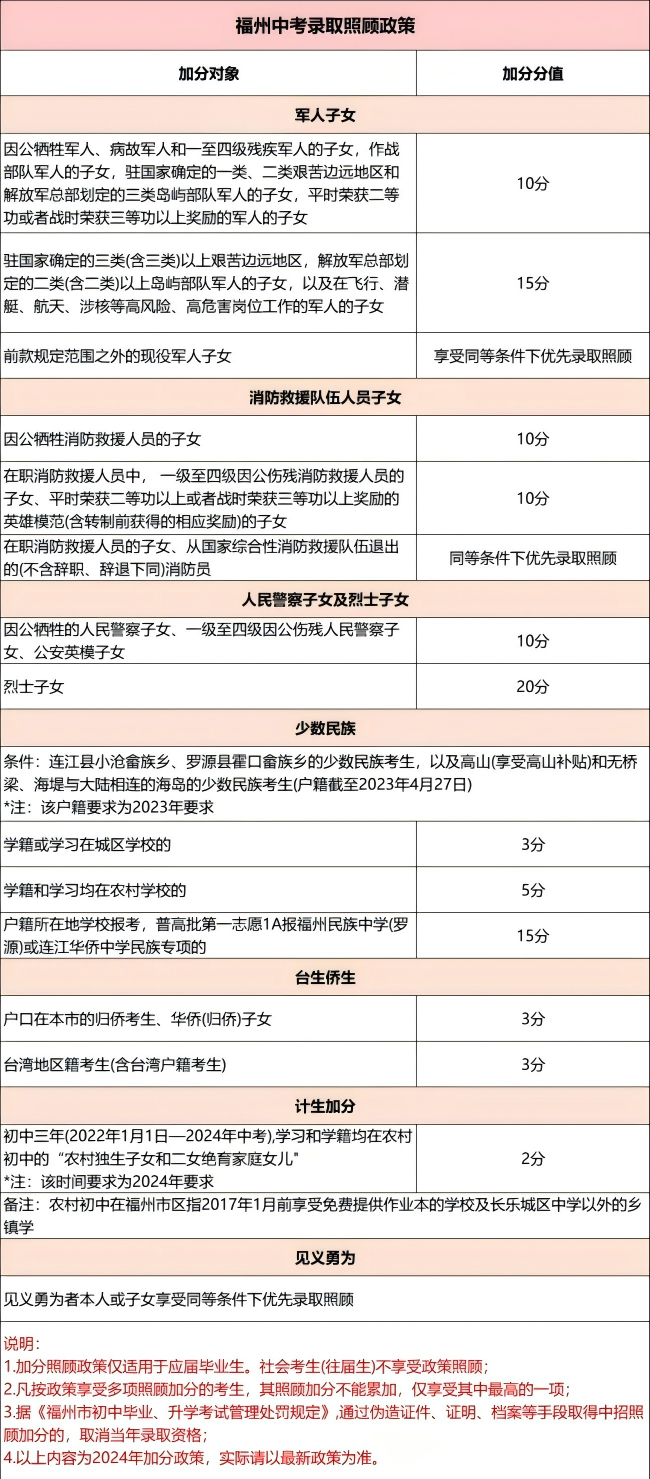 01、福州中考加分政策