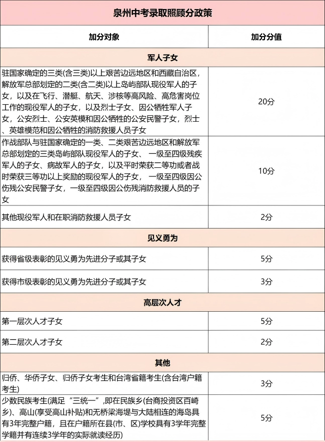 03、泉州中考加分政策